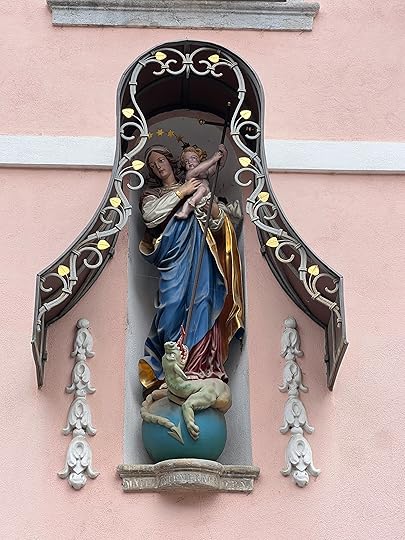 A 20-minute taxi ride finds us in Bled itself. The Lake is so blue, courtesy of some life-enhancing minerals that a canny Swiss discovered and built a spa empire based on their efficaciousness. Our delightful pension, The Old Parish House, is not yet ready so we leave our bags and hike up the crag to Bled Castle. This is strategically-placed and overlooks the whole valley, affording magnificent views. There is of course another museum – starting with the Romans of course! The best exhibit was this bronze 6th century peacock, a symbol of eternity.