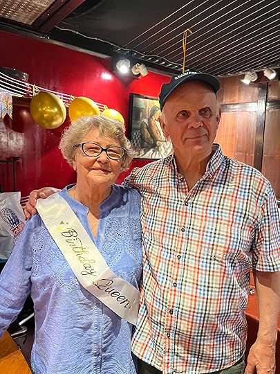 Clockwise: Leah & Julian; Simon, master of all he surveys; Eira & Julian; Simon again; Alicja and Janusz on her 80th birthday!