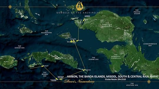 We specially chose this cruise as we wanted to avoid Raja Ampat, which is now rather over-subscribed with boats. Our route takes us from Ambon via Banda Neira, where the spice trade began after the discovery of the value of nutmeg as a commodity, with first Portuguese and then Dutch colonists from 1529, then past the island of Run which the British traded for Manhattan in 1667 after the second Anglo Dutch War. As the Brits took away the precious nutmeg seeds and planted them in Grenada and Ceylon, this was an appalling deal for the Dutch.