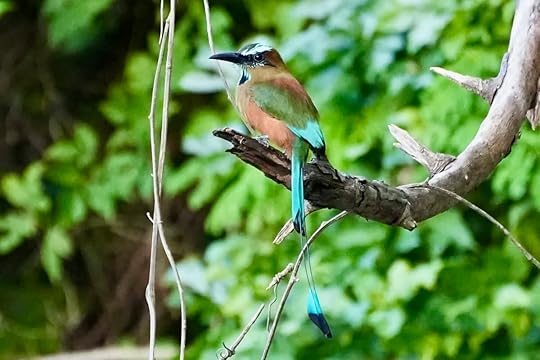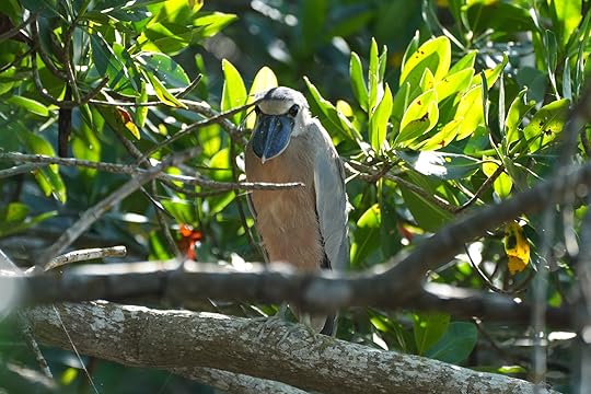 In the early evening we meet Bibiana, who is as Mayan as you get, with his basket slung round his forehead, and only just over five feet tall. He is to take us birdwatching and will be our guide to the main site the following day.
