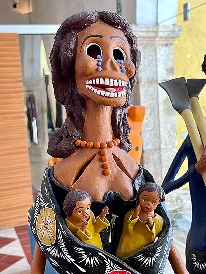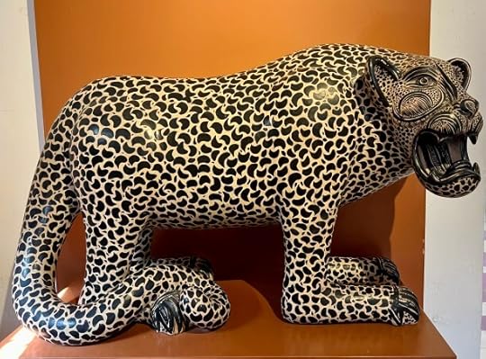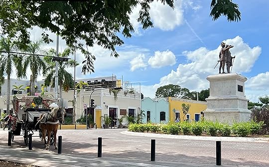 Modern wooden jaguar, one of the most power symbols of Mayan mythologyWe arrive in Merida after a pain-free drive on near empty roads thorugh central Yucatan. Finding our home for the next week is not as challenging as it might have been before sat nav: Merida is laid out on a grid system and the streets seem to have alternate one-way systems. We can already see that this low-rise city with its colourful buildings is going to fun!