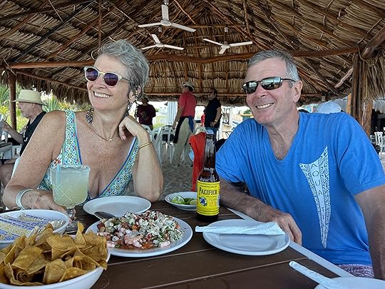 The ride back is really rough, the boat thudding on the waves and drenching us with spray! So we arrive back wet – nothing that a good mezcalita and a plate of ceviche can’t cure!