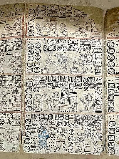 Side view of the Temple of 1000 warriors, showing mix of Toltec and Puuc columns/pillarsIt was a major trading centre, with finds of gold and obsidian – neither local. Agriculturally the Mayans relied on corn, beans and squash, supplemented with other vegetables. Noone really knows how or why this great city declined but it was no longer thriving when the Spanish arrived in the 1532 and occupied the area, subdividing it up among their soldiers. They were a most sophisticated civilisation – astronomers, mathematicians, spiritualists – with an extraordinary calendar guiding their belief system and activities, far too complex to go into here. I got my Mayan horoscope at the museum in Merida and according to this I am ‘serene but strong, and usually succeed in what [I] set out to accomplish…positive, problem solver, generous with advice…traveller who takes the road both in happiness and sorrow. Feminine, verbally skilful’. Well I’d say they knew a thing or two!