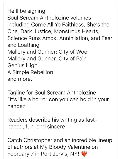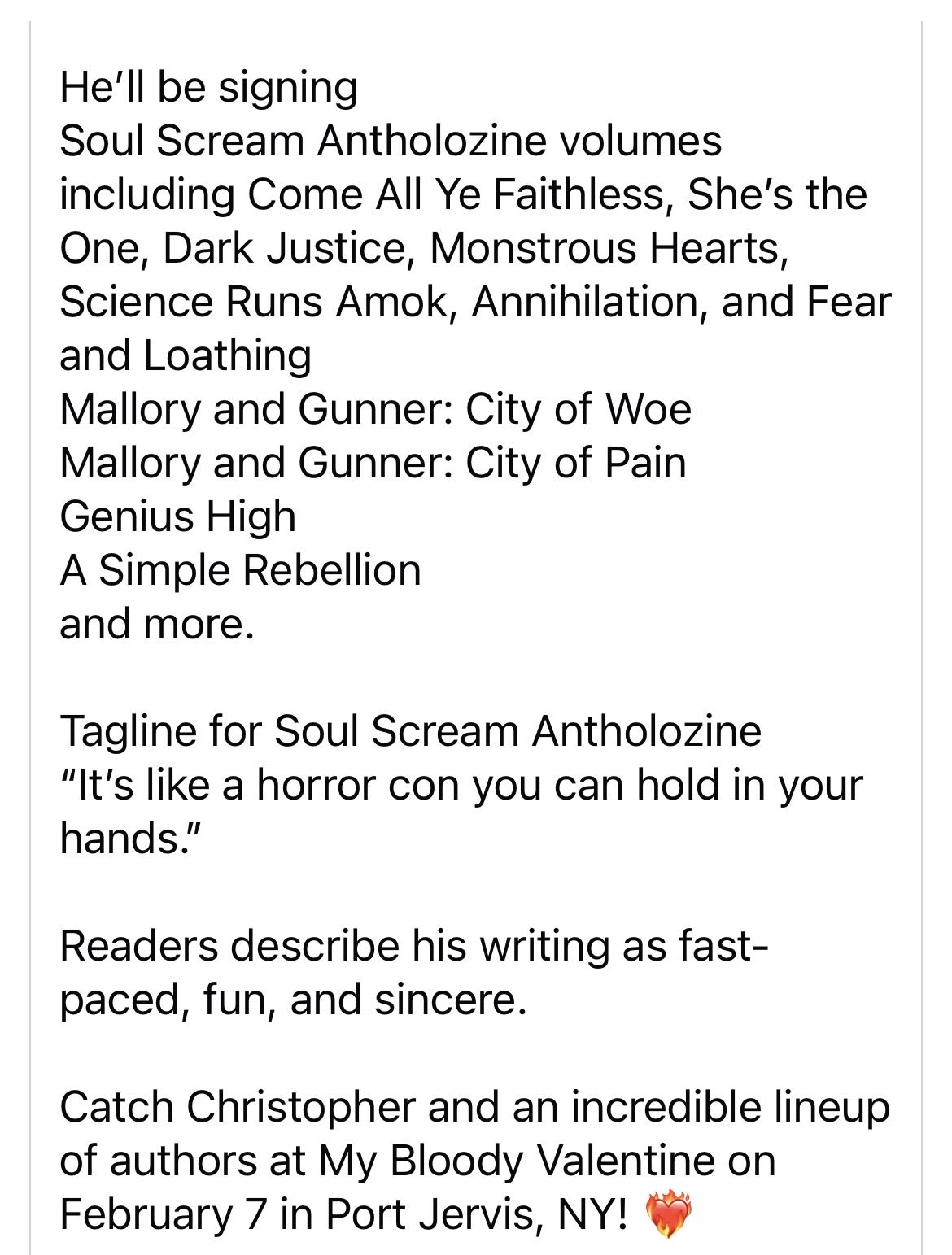 I’ll be reading from Soul Scream Antholozine Fear and Loathing and maybe from It’s Been a Privilege, and I will bring books to donate as prizes for the horror trivia contest.