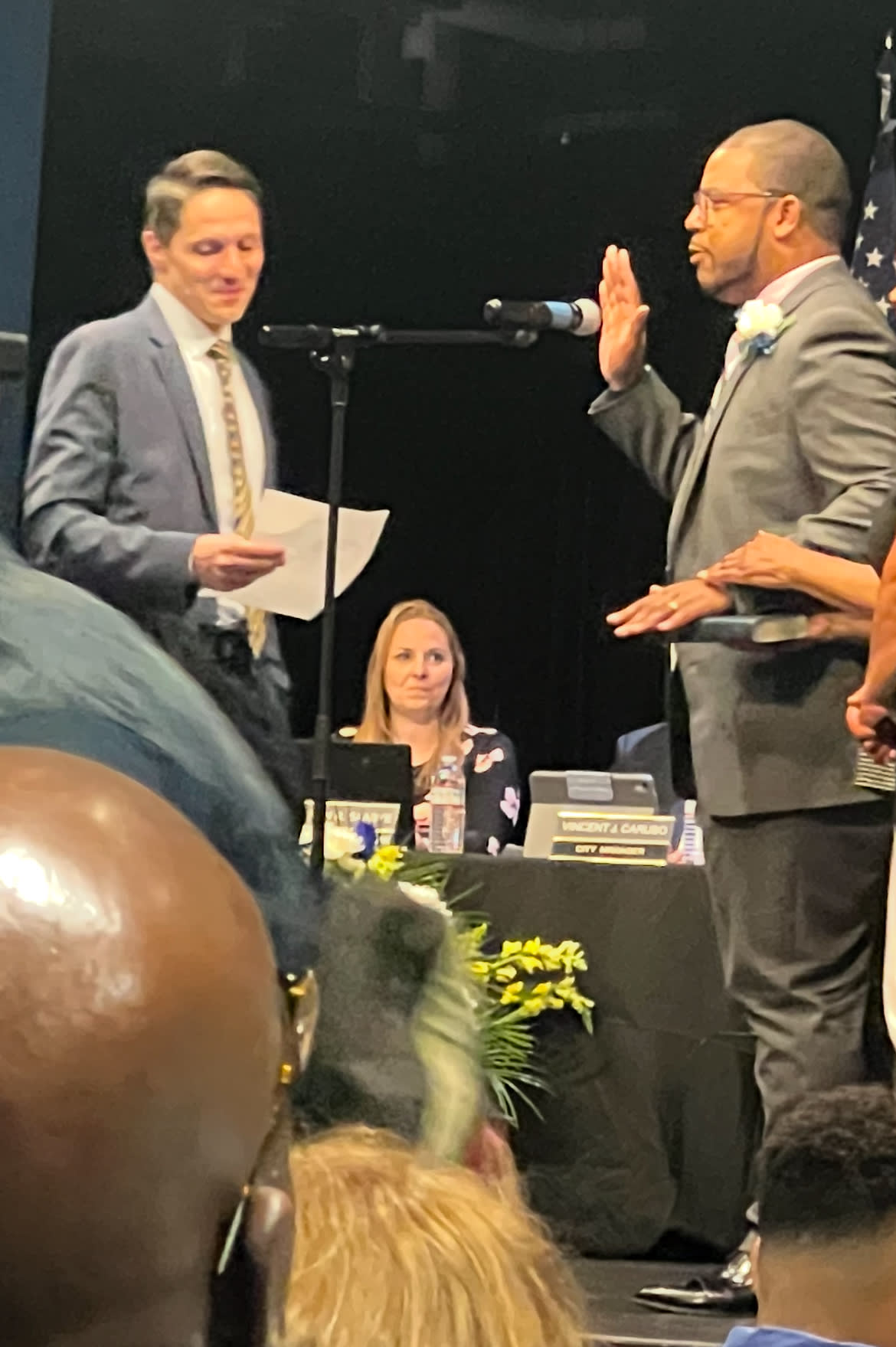 At a swearing in ceremony, before an incredibly diverse packed auditorium that boasted representatives from a wide array of ethnicities, religions, ages, and genders made up of neighbors, friends, community leaders, and family who came from four states to witness only the second black mayor in the city’s history take the oath with the help of a lifeline friend and fellow community servant, Caseen demonstrated grace, gratitude, warmth, and, as repeatedly noted throughout the night, hope.