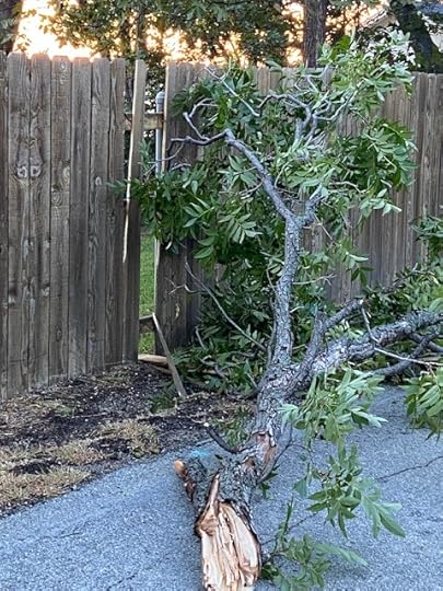 But with no electricity, you don’t have the fans working either. We opened the windows and had a bit of a breeze Friday night. I made plans to go to a hotel because we’d seen a giant tree east of us down across some big power lines. It didn’t look good. We couldn’t check in until after 3 pm. Surprisingly and thankfully, the power came back on before we had to go to the hotel.I always charge my phone and Kindle when I go to bed at night. But that Friday night, I didn’t have power for them. Saturday was a bit iffy and I only used my phone when I had to. At one point I went outside and sat in one of our Adirondack chairs, but I didn’t want to use my phone or my Kindle because they were both giving me low battery signs. I realized how dependent my whole life is on power.