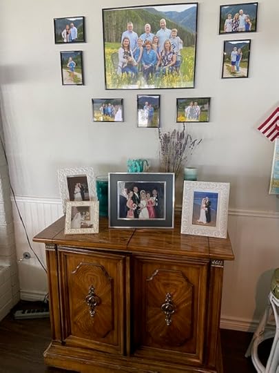 The good thing about hosting the neighborhood coffee is the host doesn’t have to provide all the food. Everyone brings something which makes for a lot of food. I think I’m going to have to move the wedding pictures off this table. It opens out to become a serving table, and I can put the coffee, cups, etc. there. That will help move folks out of our rather small kitchen.