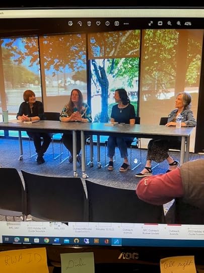 Three other authors attended. Monical Flores who has two young adult fantasy books out. Angelicque York who published a memoir about her experiences with her husband’s struggle with Alsheimer’s. She also wrote articles for newspapers. The third person was in a different category. Amanda Churchill has a book releasing in February 2024 published by Random House. She tells stories her Japanese grandmother shared with her growing up about coming to this country and losing everything she knew before. And she couldn’t even go back because it was no longer the way it had been. Amanda is definitely not an Indie Author. However hearing her experiences made an interesting contrast to the rest of us.