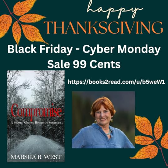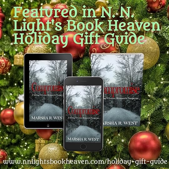 )Also, next week I have two cool things happening. I will be a guest of my friend JQ. Rose. She’s an author I met when we were both with Muse It Up Publishing quite a few years ago. JQ’s writing crosses genres from suspense to mystery to thriller. All really interesting reads. And you should check out her memoir about the time she and her husband made the jump to move and start a new business. She also has a book telling you how to write your own memoir and a great book for young girls spotlighting women doing amazing things. Here’s the link to her blog. https://www.jqrose.com/ I’ll share the specific link to my post next week on Facebook.And then from November 1-December 31 NN Light Book Heaven has her Gift Guide. I’m spotlighted on November 15 with COMPROMISE. I’ll share that link on Facebook, too.Hope you’re experiencing great fall weather. Love to hear from you.Blurbs for each of my books with links can be found on my website https://authormarsharwest.wordpress.com/ Where you can also sign up for my blog and my