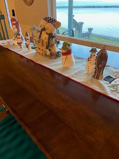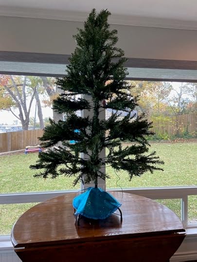 Sadly, Wednesday, I took down the Fall decorations, which are my favorite, and I’ve begun putting up some of the Christmas decorations. A tad earlier than usual, but it’s just how the calendar worked out. And you have to pay attention to the weather, too. We’ve had a couple of really mild days with little wind (kind of unusual but appreciated.) The tree is up but not decorated. Bob smartly wrote on the box that we got this tree in 2022. Easy to forget those things. I move my violets from this table where they get great morning light.