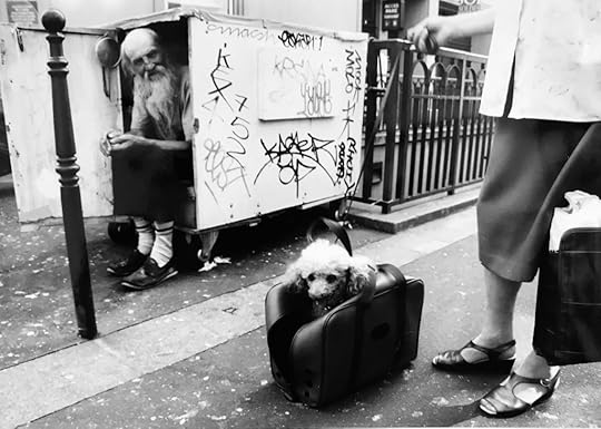 Monsieur Gérard, Paris, July 2003 (photo John Culbert)I was left with notebooks full of scrawlings, copies of ancient maps of the city, photos I had taken in and around the site of the gibet. On one of those rolls of film I had snapped photos of a homeless man living in a tidy box on wheels in the city center, just two blocks from the site of Le Halles. Monsieur Gérard survived the calamity because he lived at street level, rather than an airless attic, and because he was visited regularly by neighbors and even a café waitress, who brought him a daily coffee. He was articulate and cheerful, but as he frankly informed me the first time we spoke, his memory was failing; he wouldn’t remember me, he said, if he saw me again.