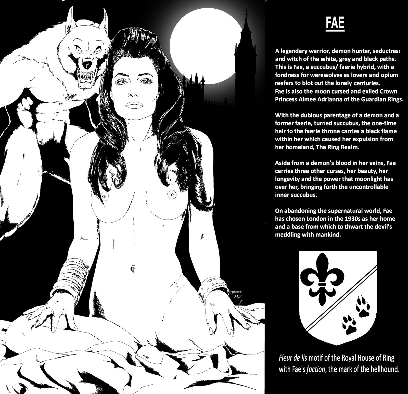 She laughed at his expression. “Fidelity is not one of my requirements when I take a lover, Mr Bennett, and none whom I take to my bed are under any illusion that I will remain faithful to them. Faeries never are, even less so those with a demon in the genepool, such as I.”He was sat beside her on the bare granite of the battlements, cleaning and oiling his Model 1911 .45. He reassembled the weapon, inserting a full magazine, cocking it and applying the safety catch before holstering it, for what use is a firearm that is unready for instant use?The metallic sound of the action drew stares from the armed and fully armoured werewolf sentries on the nearby walls, their yellow eyes looking at the firearm, but with only passing interest. They understood edged weapons, claws and fangs, not devices from the world of humans, so the light of guttering torches and braziers showed them turning back to resuming their staring out into the black night.“And you, Princess,” he asked of the beautiful girl beside him, naked but for jewellery and his cloak, draped across her shoulders. “Have you never remained faithful, not even when you were in love?”“I did try once, but that is another story, and fidelity is a human expectation, one that is not always lived up to, whereas Faevolk are not so inclined, but we are not dishonest. My last love was human, and he was already married to another, so rest assured he was not faithful to either of us, but his wife loved him with a depth that equalled one’s own. When he died, quite suddenly, she immersed herself in a quest to ennoble his name, whilst I sought out the poppy, which he had introduced me to.”“Drugs,” Scott was disapproving. “So it was he who got you hooked on opium.”“Nobody makes me indulge in anything against my will, Mr Bennett. He was writing a study on sexuality and I was the test subject in the chapter dealing with narcotic use and coitus. Though admittedly it was all rather surreal, one’s lover, very detachedly taking notes whilst an artist sketched, and I indulged myself in orgies whilst high, as one is wont to do when an opportunity arises.”“So where is this work, was it ever published?”“No, his wife sought to cleanse his reputation, post mortem, and the book, all but one page, was burned, as was every scrap of his research. The surviving page bore my portrait, beautifully rendered in pen and ink, which she issued to the staff at their home. With my picture came an order that of all his admirers who may wish to enter the grounds and view his mausoleum, I alone was to be denied entry.”He said nothing, just watching how that still hurt after more than a century.“I did of course gain entry, and she set the dogs on me… or rather she attempted to do so, but what dog would dare molest the offspring of the hellhound, hm?” Her smile was somewhat wan, though. “Of his many lovers, it was I whom she most feared, the one he was most likely to abandon her for, or at least that was her assumption. I knew he loved me, in his own way, but I knew that she was always his true love. I therefore have but two mementos, a shirt he had left in my tent, in India, where we first met, and a soldier’s pith helmet, which was immensely more functional than one’s riding bonnet.”Scott recalled the man’s shirt she had worn shortly after their first meeting, its fabric thin with age and use, and her statement that it afforded her comfort. The pith helmet would be the one that appeared beneath his hospital bed, along with other items and the large bag. He had never asked about the curious cap badge, depicting as it did, in silhouette, a nude young woman, with long flowing hair, astride the back of a rearing tiger, and now was not an appropriate moment.“Who was he?”“A soldier, an explorer, a linguist, author and translator, Mr Bennett. He was, Sir Richard Burton, although when we first met, during the mutiny, he was a humble lieutenant and, in his words, “fit for nothing but to be shot at for six pence a day". Hewas with Beatson’s Horse, whilst I was secretly tracking down the main culprit in starting the whole mess, a demon in human form. India was in turmoil, and quite unsafe for a young lady to travel alone and unmolested, so one rode with the colourful ‘Beatson’s Horse’ for a month, if one can describe side-saddle as riding, but I do so enjoy the smell of a campfire and sleeping under the stars. I treasure those weeks in India, indeed.” Fae sighed wistfully. “We followed different paths, and it was not until he lectured at the Royal Society, in Holborn, that they again crossed.”As always, he was interested in her past, but the events in Ahuja still remained unexplained“And Leon?” Scott prompted. “I have loved six times and mourned beside the graves of five. Prince Torvelin of Estar; Bellatina, a slave girl from the Eastern kingdoms; Peridale, the first Fractured Lord, Sir Richard, and King Leon, the Luna Knight, to give him his official title.”“And the sixth?”She did not immediately answer; instead she ignored her glass and drank from the bottle before pausing, as if choosing her words before speaking.“A mistake.”Reaching behind the gold chains at her left ankle, she retrieved a small, soft leather bag that she had secreted there, but her movements were not as adroit as they had been.The withdrawal shakes of the addict were causing her fingers to become awkward and she fumbled the simple act of undoing the thin leather strap that secured it.Scott reached over and took it gently from her, deftly untying the strap and opening the small pouch, which contained only enough hand rolling tobacco, cannabis leaf, and opium powder, contained within a tiny twist of paper, for a single joint. The cigarette papers were older than he, judging by the art deco design on the half empty packet.‘Abadie’ Papier à CigarettesOpening the cover, he saw several signatures and a dedication. ‘à Mimi, ce
