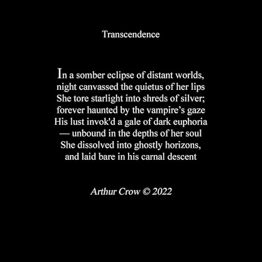 “O’er the ache of mauve shores erotic winds billow long & deep … Her scent drips from the sky onto bare skin, bejeweling my senses — like a tapestry of blushing petals besieged in rhythms of passion. Whispers of untamed rapture beckons my lips as I descend into her gaze, unto the sea of bliss where I shall forever drown.”