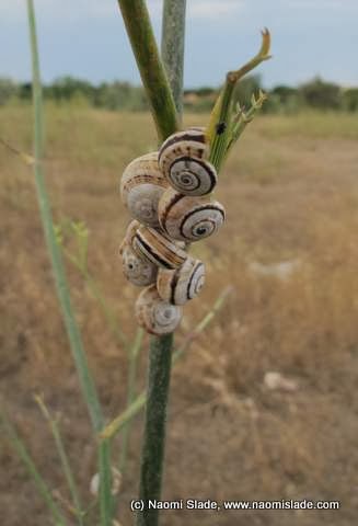 Further Notes on Natural History, Perpignan, three days later The very south of France where it joins Spain is, relatively speaking outside my comfort zone. Unlike England, things are like, totally dry. Many plants have reduced or leathery leaves to limit water loss so it is a bit like pitching up in a Biology demonstration. And rather than strolling around contentedly scoffing plants, snails congregate like clusters of calcareous flowers on the twigs in the super-littoral zone, aestivating to retain water in the baking heat. It is a different world.Turns out les garçons do not like it much when a lady driving a heavily laden seven-seater with roofbox and a GB number plate overtakes them. But this is not confined to France.Swallowtail butterflies are too lovely to be real.