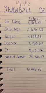 I have this notebook where I've kept track each month of how much debt I have and how much I've paid off. This is my first entry from April 2010 when I started this journey.