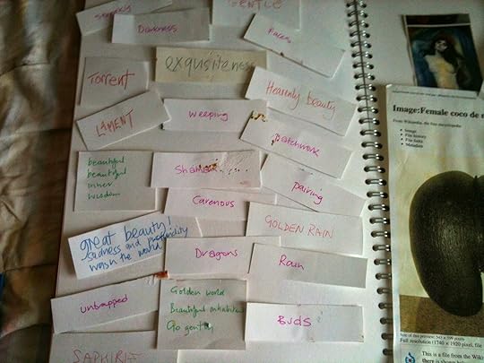 1. Jotted down words and sentences that 'came to me' in unusual places, i.e.. not my writing desk nor my Soul Studio, more likely the shower ... yes, that's right. Turns out that running water is a conduit for soulful ideas to pour out of one. Who knew.
