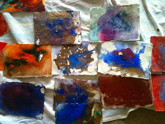 Yesterday, I spent time in my Soul Studio looking at my archived paintings. I had archived them because I thought I was 'done' with them. They had served their purpose in terms of giving back to me - insights gained. I thought they were waiting to be catalogued. The moment I started laying them out on the floor, I realised something important. I had made no decision about the placement of these paintings. They were simply stacked on shelves, neatly stacked, but without purpose! In other words, they were gathering dust. Laying each one out, I started to organise them into themes: colours, words, phases, sizes. As I did this I could feel the archive catalogue in my brain clicking things into place. Strong memories were coming back to me. Turns out, I wasn't quite done!