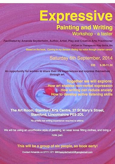 I am running an Expressive Painting and Writing taster workshop on September 6. This is a chance to paint what's in your heart, and we will be throwing out the rule book, (i.e. no technical experience is required to do this), and working with connecting with our inner voice, listening to our intuition, and expressing that through paint and words to find new meaning and purpose. This will be fun and enlightening. So, if you are curious about 'what's next in my life?', or you are interested in learning more about yourself, this is for you! This will be a small group of up to 6, so please book early.