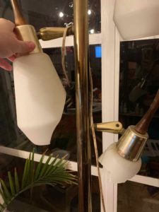 The sellers dropped it while removing it from the house, so they gave it to me free, and then I had to search for replacement shades and find out how to rewire the thing. The wiring was truly scary and that pole had large sections of rotting ele