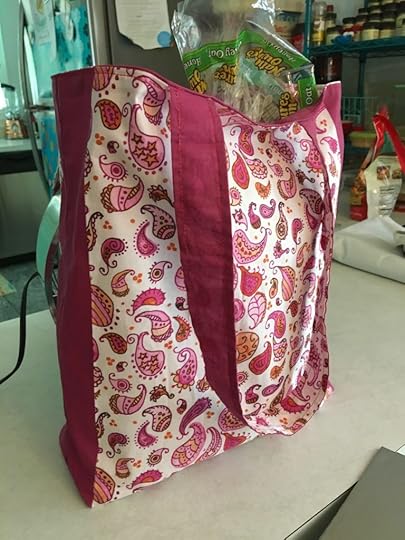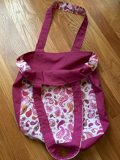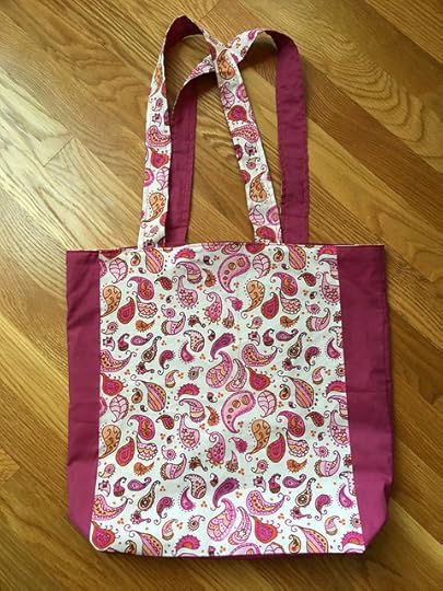 A while back, Spoonflower integrated with Sprout, a company that will sell you fabric custom printed with pattern pieces. You can buy simple patterns like this tote bag, or more complicated dresses, jackets, and so on. I decided to try Sprout with a simple tote bag, using one of my fabric designs.