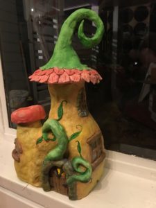 And there you have it! This one is actually the second one I’ve made. (The first one is the tiny one on the left of the picture below.) I know I can make them even better with some practice. I love that I have a miniature house for my garden that no one else has!