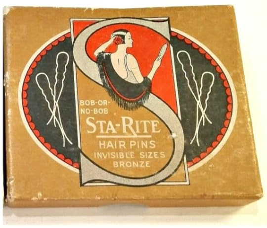 Found today on Poshmark, this package of 1920s hairpins. “Bob-or-no-bob.” Quite charming. The brand name, Sta-Rite, is also very early-20th-century, isn’t it?