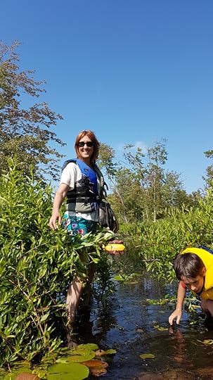 Standing on the bog roots with my nephew, waiting to pull the next kayak through.