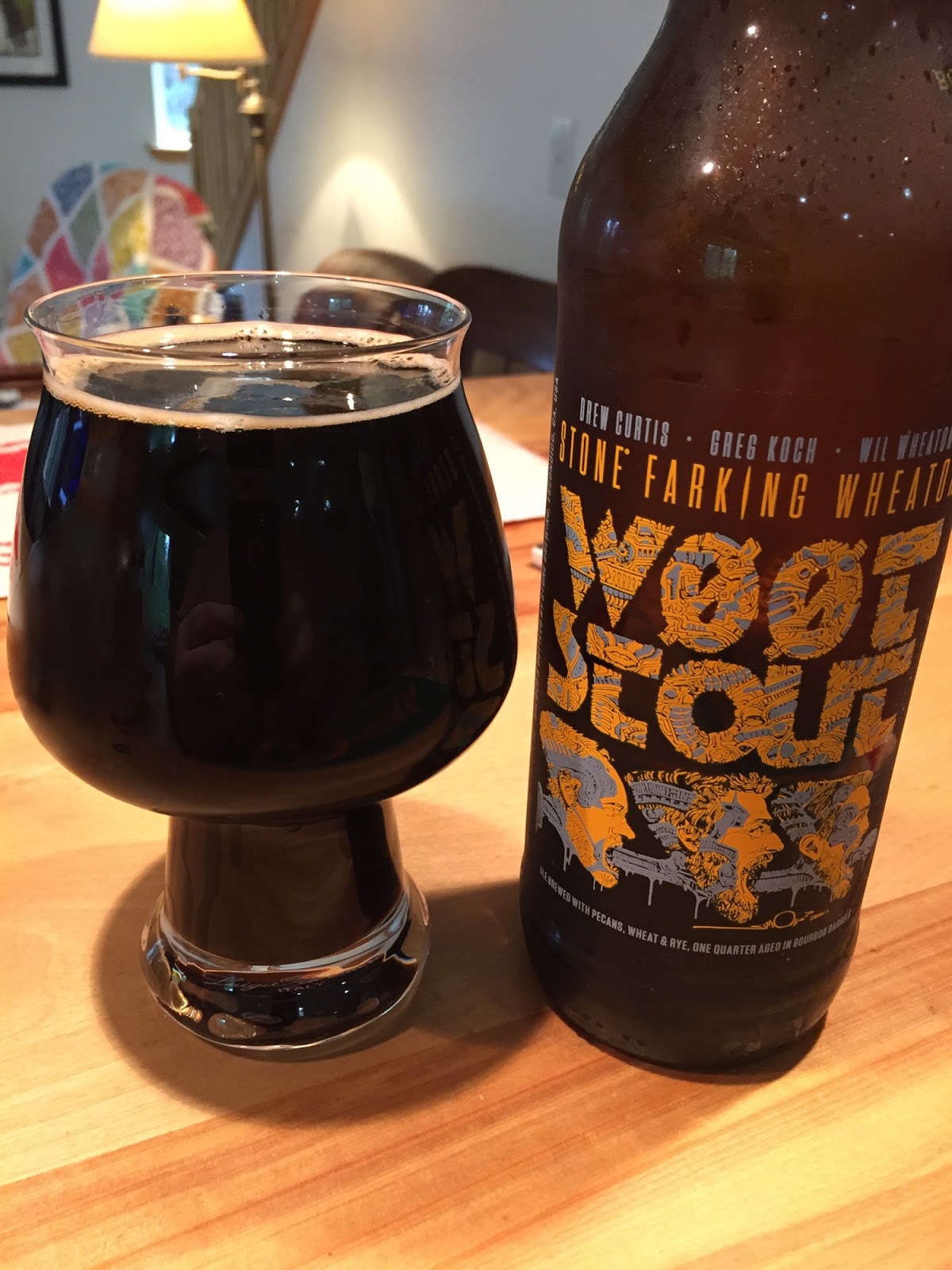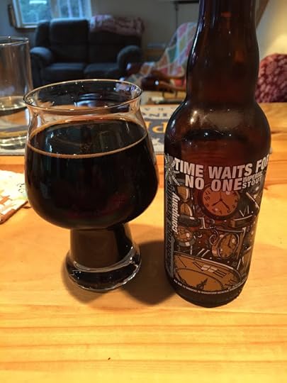 Stone Brewing's Stone-Farking Wheaton Woot Stout: I reviewed an earlier vintage of this beer on 7/23/2015. This one poured opaque with a small tan head that dissipated rapidly to a collar. The nose was mostly notes of sweet malt and caramel. The mouthfeel was heavy and thick, with okay carbonation. On the palate, the flavors were rich and oily, with roasted coffee notes and caramel predominant. It seemed a bit sweeter than your typical imperial stout. There was some alcohol heat noticeable on the finish. Overall, a pretty tasty RIS. 13% ABV.