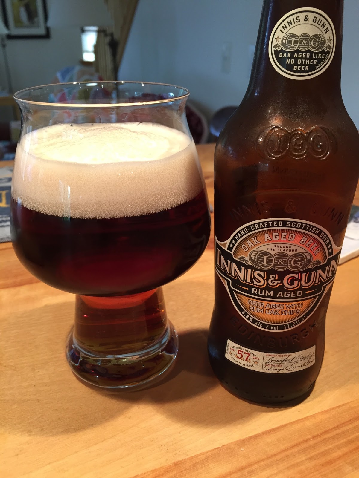 Innis & Gunn's Rum-Aged Ale: This beer was aged on rum-soaked oak chips. It poured a red-gold color with a nice off-white head. The aroma had notes of toffee and rum. The mouthfeel was medium and the carbonation was good. Like the Original Ale, this beer had notes of toffee and caramel, with the addition of subtle rum and oak notes. Very nice. 6.8% ABV.