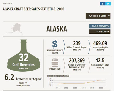 The Brewers Association has published the statistics by state for 2016. Here's how Alaska stacks up: