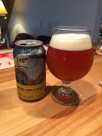 Crazy Mountain Brewing's Lawyers, Guns, & Money Barley Wine: I stumbled on this at Country Liquors in Kenai. This new brewery from Colorado has just started to distribute here in Alaska, so I picked up a four-pack of cans of this beer. It poured a slightly cloudy honey color with a cream-colored head. There was a fair amount of American hop aroma from dry hopping. Carbonation was good and the mouthfeel was medium. On the palate, the malt and bitterness were in fairly good balance. Overall, I rate it an okay beer, but not a spectacular example of the American Barley Wine style. 10% ABV, 56 IBUs.