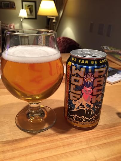 Midnight Sun Brewing's Wolf Pack Pilsner: This is the newest flagship beer from Midnight Sun. It pours a clear gold with a small white head that dissipated to a collar. The nose was mainly clean malt notes, with little hop presence. Carbonation was good and the mouthfeel was light. The flavor profile was maltier than a typical Czech or Bohemian pilsner. It's hopped with Galaxy and Hersbrocker hops, but just enough for balance. 5% ABV, 34 IBUs.