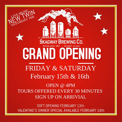Skagway Brewing has announced that the grand opening of its new location will take place on February 15th and 16th. As I wrote in my last blog post, the new location on Broadway represents a 200% increase in seating and a 400% increase in brewing capacity. The brewery is also having a special Reservation only Valentines Dinner on February 14th.