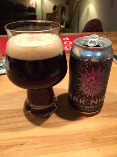 Midnight Sun Brewing's Dark Night Winter Warmer: Another in MSBC's series of limited edition canned releases, this beer was aged in port wine barrels. It poured a very dark ruby color with a small, tan head. The port barrel aging was definitely noticeable in the aroma, along with malt notes and hints of spices. The mouthfeel was light, and the carbonation was good. On the tongue, the flavors were smooth and malty, with sweet elements from the raisins and brown sugar used, plus a touch of pepper from the rye. There were distinct notes of port and oakiness, before falling away to a long finish highlighted by the light use of cinnamon, nutmeg, and orange zest. An excellent choice of style to apply this particular barrel aging regime to, and the end product is a complex but quite delicious beer. 8.7% ABV, 30 IBUs.