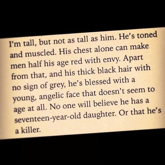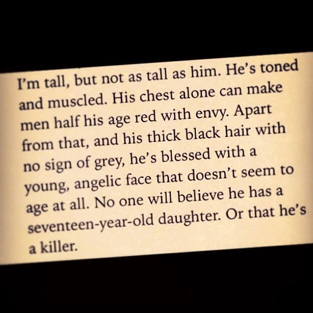 “Dad fastens his knife jacket before putting his black pea coat on. He’s like a walking armoury. He has two guns on either side of his chest secured in his black shoulder holsters, an array of magazines on his belt and of course the knives. I don’t need to check to know he has two more guns strapped to both his legs. With his dark coat on, dark jeans and boots, and his weapons hidden away, he looks imposing but harmless. Unsuspecting people would never think of him otherwise.
