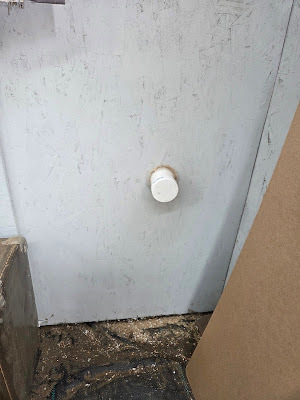 Then, I took a bit of PVC pipe and threaded it through the hole, creating the pass-thru. Jay caulked around the pipe on both sizes to keep it in place.