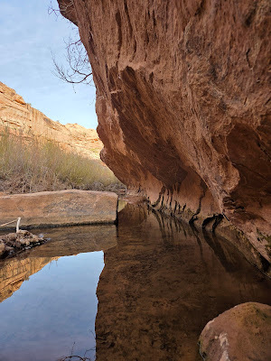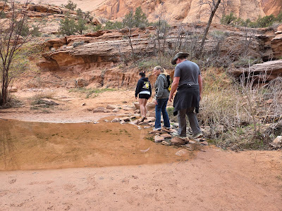 Not being from Utah, and rarely hiking out there, I'd never heard of Grandstaff Canyon, but it was listed as one of the top seven or eight best hikes outside of the park. AllTrails had it listed as an "easy, flat" out and back trail of about five miles with only a 300 foot elevation gain. I know it might come as a surprise, but AllTrails lied. It was about five miles, yes, but I wouldn't have called it "flat". It wasn't overly difficult, but there were lots of water crossings and a few small scrambles, and the overall elevation gain was more than double the stated 300 feet.