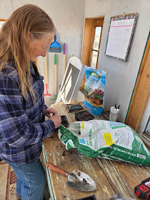 Anyway, the Bionic Cowgirl comes down for Sunday dinner each week, then stays at Nebalee's so she can spend some time with her, too. And, as I've mentioned, I always have a project for us to do. One of Mom's friends said that Mom's love language is "acts of service", and they're so right. We all benefit from it, but I've been extra lucky for the past few years, with her help building Whimsy and helping out with Maggie. So far this year, the focus has been on getting the garden started. Later in the spring, we'll go back to working on Whimsy, who needs a new coat of paint and I've got to frame in a few of her windows that I'd left hinged to be able to open them. In two years, the only time they've been opened is when the wind does it, so it's time to just frame them in.