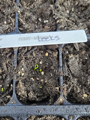 Look at my babies!I've watched them pretty carefully over the last week or so, and only about half have come up. It's a good thing I use "black thumb math" when planting, and plant double what I think I need, just in case this happens. Yesterday, I moved the leeks out from under the dome, because they were almost getting tall enough to touch it. Now, they're in a different window, still under grow lights, and they'd better keep growing!