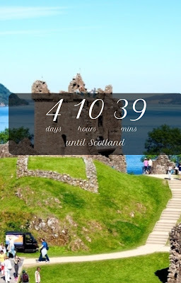 we only visit places that we've either never been to, or that only one of us has been. For example, we've both visited Rome (before we were married), so Rome's off the table. He'd visited Fussen, Germany a couple of times before we were married, but I hadn't, so Fussen was a go. Now that we've both been, Fussen is no longer an option.we can re-visit a country that we've both been to, but we can't stay in a place that we've already been.We loved Costa Rica and want to return, but the Guanacaste Provenance is off the table. Same with Italy (the exception with Italy is that if we're ever able to buy property there, it would be in Radicofani).we alternate choosing destinations.We both agreed on our Italy trip, because it combined places we both wanted to see. Jay chose to spend a couple of days in Germany (see Fussen, above), and I wanted to go back to the Tuscan region of Italy. Our desires aligned and we were able to do both.This year's trip is to Scotland, my choice. The next trip is to the Swiss alps, Jay's choice.The reason we put those rules in place is because there's a lot of the world to see, and it's easy to keep going back to familiar places. Our travel time and budget is limited, so we have to be strategic in how we do it.In just a few days, we'll be boarding the plane for Scotland, and we're both incredibly excited. Scotland was never really on Jay's list, but as we started planning and researching, he got more and more excited. I found a free countdown app that I've been using for the past few years. As soon as our tickets are bought, I put the leave date/time in the app and let it do the counting down for me. It's fun to watch it go from year(s) to months, to weeks, then days, etc.
