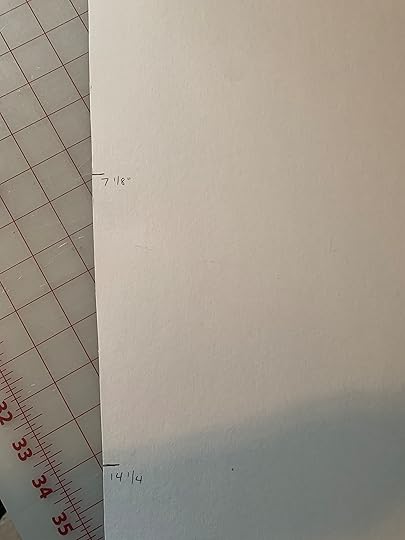 For the second, the top, you’ll need a piece of paper at least 14-1/4 x 7-1/2 inches. Taped together copy paper is fine.