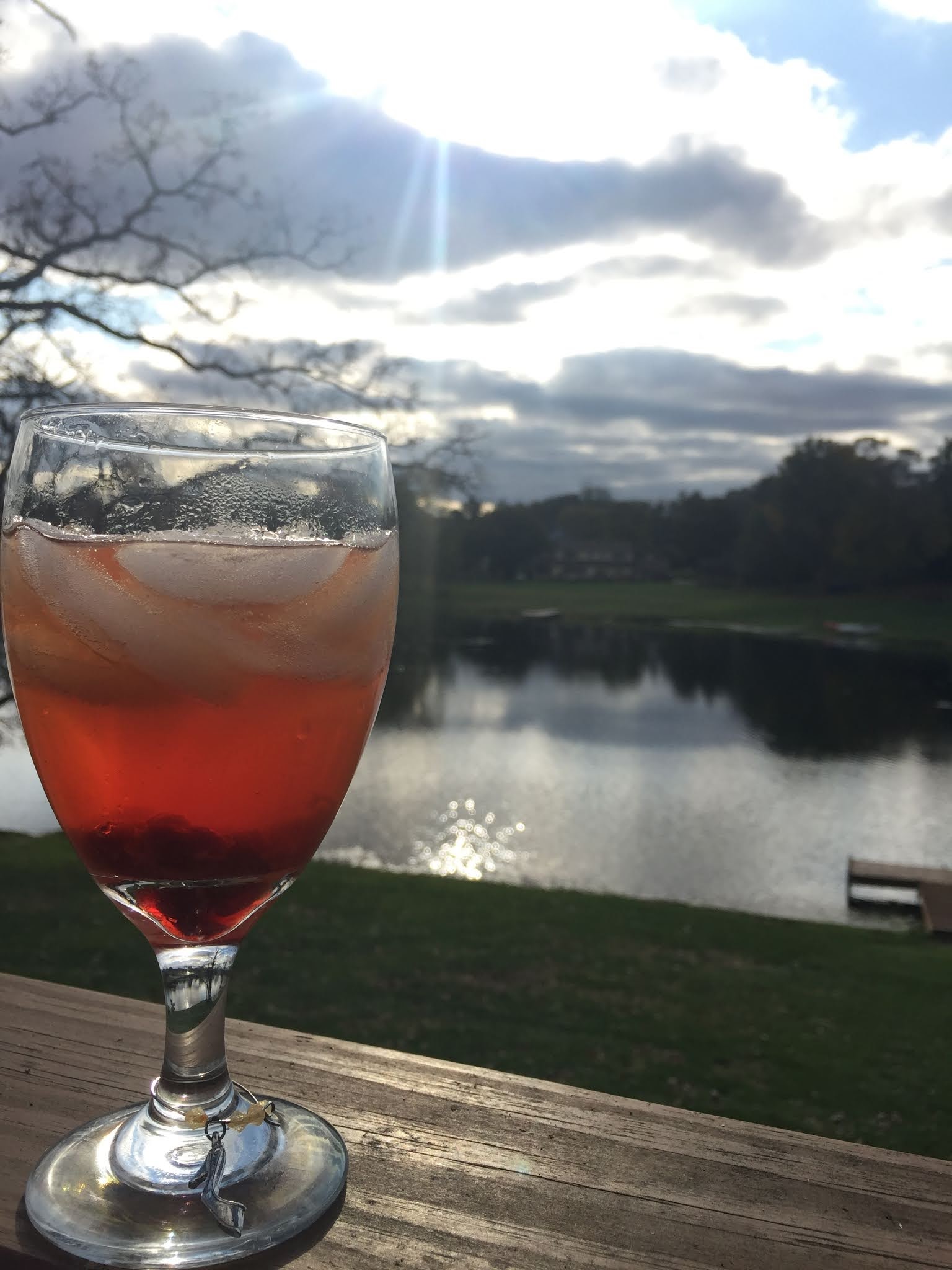 Southern Comfort (my fave b/c it's on the sweeter side)Fee Brothers Peach bittersKlarbrunn sparkling peach mango sodaDoor County Sour Cherries icePerfect for a "bitter"sweet fall day that tastes like a sip of autumn. Also a perfect cozy drink for reading by a fire. Cheers!Til next time,Kym