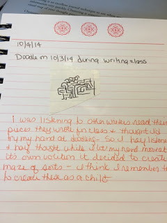 The page was softer, more receptive to the pen. On those pages that were not receptive to the pen, like the crayon doodle, I used stickers and such and created a collage of flowers and letters to create words that stimulated me.