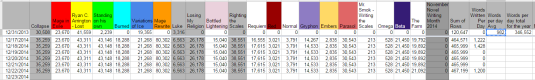 Do you keep track of your word count for each day? I started a spreadsheet to track each project and how much I get done at a time during last year’s NaNoWriMo and kept it going this year so here are my Stats for the year.