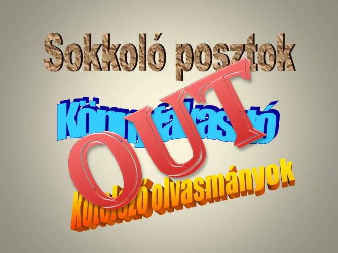 1/ Sokkoló posztok - amiktől a székről menten a mélybe vetjük magunkat:- Mik azok a „motívumok”, jellegzetességek, amik azonnal kiverik a biztosítékot mások posztjainál, legyen az akár szerkesztésbeli, akár tartalmi elem?- Mi az, amit nem olvasol el soha mások blogján (amit egyébként követsz)?- Mit vált ki belőled, ha olyasmit látsz egy blogon, ami nem jön be? Kommentelsz, kibeszéled, vagy megtartod magadnak a véleményed, és nyomsz egy piros ikszet inkább?Ezt így egyben, mivel jó ideje már, hogy nem olvasok posztokat, sem sokkolókat, sem másmilyeneket, ezért aztán nincs is igazán mit mondani róla. Jó, ez nem teljesen igaz, mert napi öt-tíz percet rászánok a facéra, és ha pedagógusokról, oktatásról szóló cikket, posztot találok, igyekszem elolvasni. Valószínűleg mazochizmusból, mert tízből kilenc-tíz kivágja nálam a biztosítékot… legkésőbb akkor, amikor a kommenteket is elolvasom. Általában próbálom megállni, hogy hozzászóljak, leginkább azért, mert nagyon zokon szoktam venni, amikor érzésem szerint fölényesen leszólnak, hogy ne mondjam, lenézően nyilatkoznak általam igen kedvelt dolgokról, s cseppet sem tudom értékelni, amikor a fejemre olvassák, hogy az én stílusom is fölényes és lenéző akár visszavágáskor, akár olyankor, ha nekem nem tetsző dolgokról írok. Hijjjába, semmi sem fáj annyira, mint az igazság. Mivel nem szeretnék fölényes, lenéző vagy kioktató (szintén sokszor vádoltak vele vala) lenni, igyekszem visszafogni magam… nem mondom, hogy mindig sikerül.