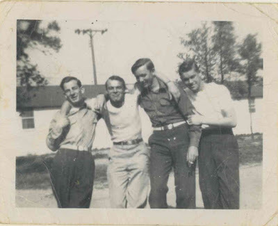 The photo above is of my husband and his buddies when he was in the army. He was a sweet and handsome man. We were married when I was just 18 years old. Our first child, Beth, was born a year later.Trips to Portland were something special when I was a young mother. But today was different. Our oldest daughter, Beth, had reached the golden age of six and Bud and I had decided she should have a brand new dress on that special first day.
