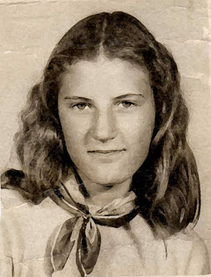 It wasn't that she needed clothes, she had plenty what with all her cousins and their generous supply of hand me downs. But she needed a store bought dress. In my mind I saw it as bright red with ruffles at the neck and on the sleeves. Would I find one at the Meier and Frank store which towered 12 stories high over our heads?