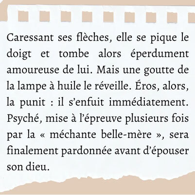 Il se précipite 🏃‍♂️ pour sauver Psyché du sommeil sans fin dans lequel elle est plongée et lui dit : « Eh quoi ! malheureuse enfant, encore cette curiosité qui te perd ! Allons, hâte-toi de t’acquitter de la commission de ma mère ; moi, j’aviserai au reste. »