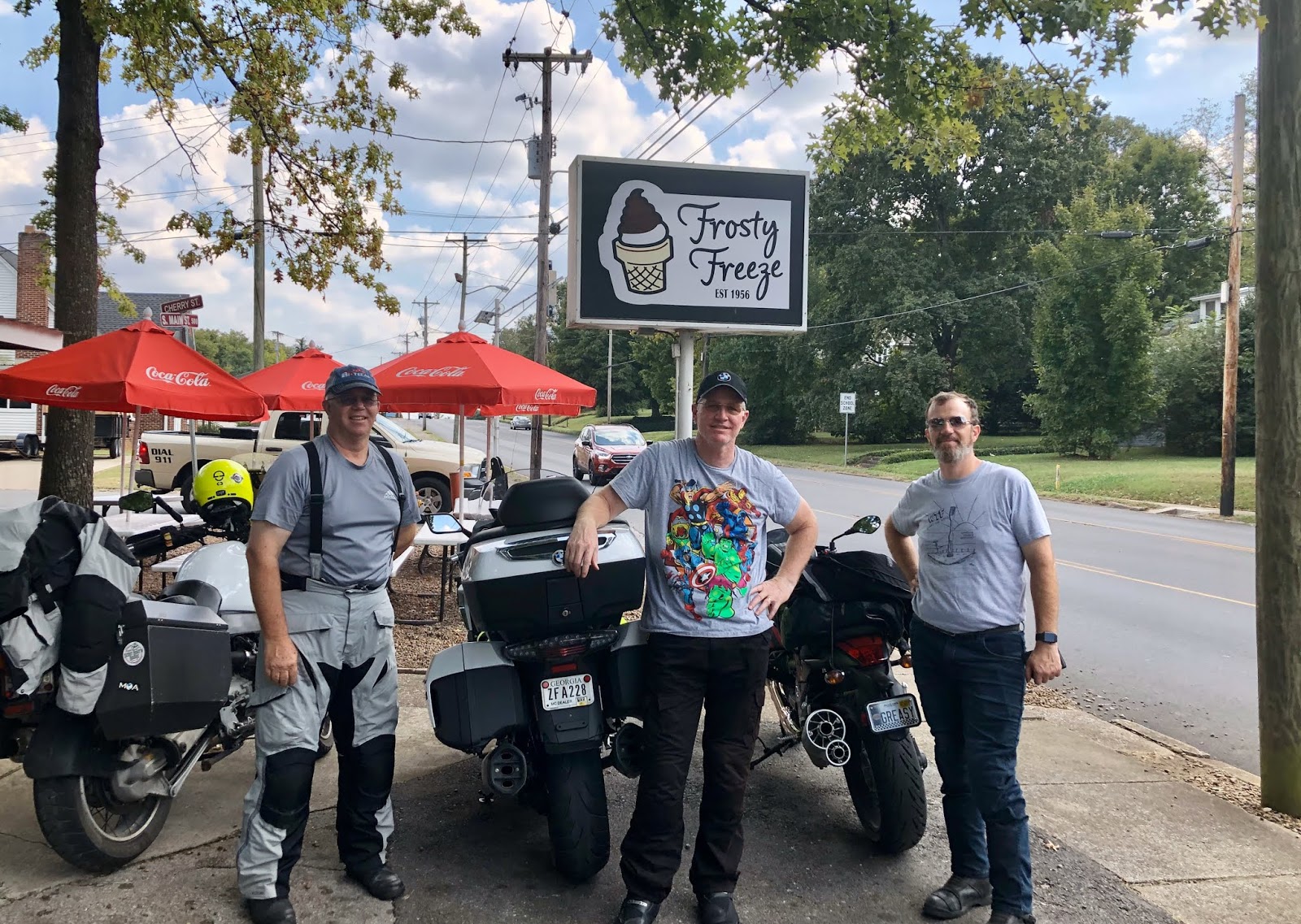 We met up at the end of the Tail of the Dragon and continued our ride together cruising the back roads of the countryside along small creeks and through less-travelled hollers and passes. We paid homage to my parents by spending the night in their hometown of Burkesville, Ky. Most of the trip I lived off of fried food and soft-serve ice cream, but that night we rode the bikes through the cool evening air to our cousin’s house for the best meal of the week. Joe David and Linda put out a spread in their country home that would make a five-star restaurant jealous. After dinner, we watched for deer in the road as we eased our bikes back to the Alpine Lodge above Burkesville.