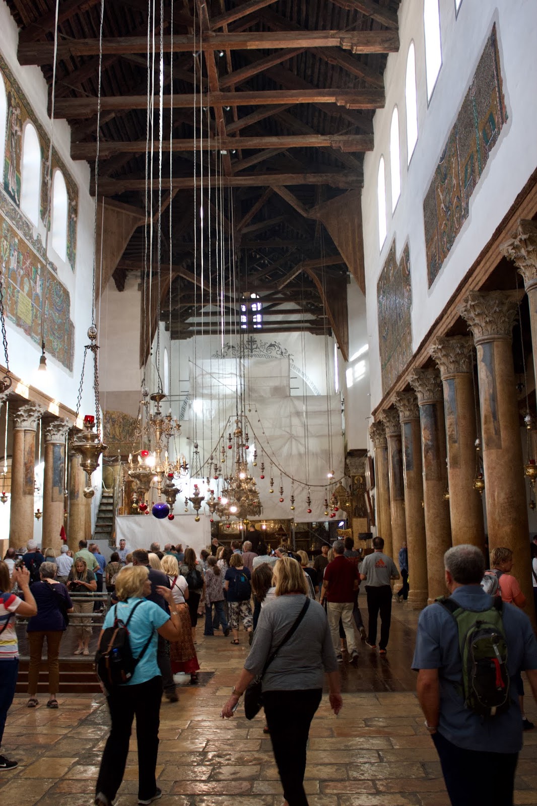 We entered the Church of the Nativity by stooping through a very low door appropriately named, “The Door of Humility,” which opened up into the main hall adorned with 44 columns. Although built for Christians by the mother of Emperor Constantine, the site today is divided and administered in parts by the Roman Catholic, Greek Orthodox, and Armenian Apostolic churches and is a divided structure. We passed from one area to the other and eventually down into the grotto. The dark cave would have provided shelter to the weary traveling family unable to secure more comfortable accommodations. I imagine it would have been a source of peace and comfort to Mary and Joseph in difficult circumstances. Since that historic night, the site has experienced its share of turmoil – ransacking armies, terrorists holed up seeking sanctuary, and even brawls between monks of different Christian sects. I was reminded of the “dark street” mentioned in the hymn intended to represent our current human condition. “Yet in the dark street shineth the Everlasting Light.”